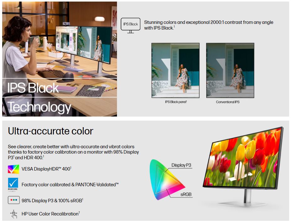 Color gamut 100% sRGB; 98% Display P3; Pantone validated