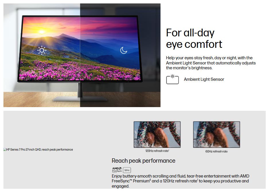 Low blue light HP Eye Ease (TÜV Low Blue Light Hardware Solution certified)