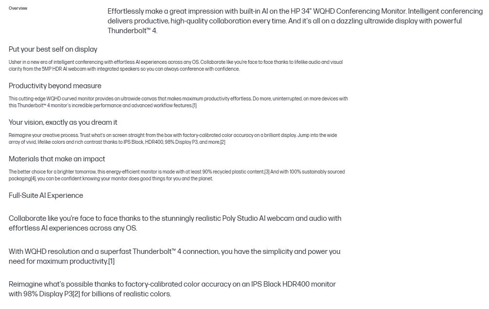 HP Series 7 Pro 734PM 34′ 3K WQHD Curved IPS Conferencing Monitor 3440×1440 21:9 5ms HAS Tilt Swivel Pivot Webcam Speakers HDMI DP USB-C VESA 3yr