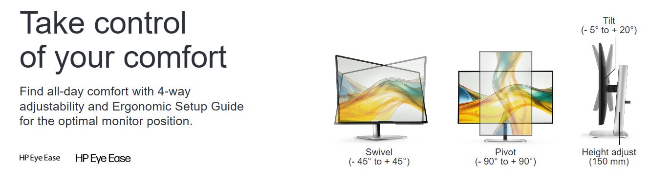 Low blue light HP Eye Ease (TÜV Low Blue Light Hardware Solution certified)