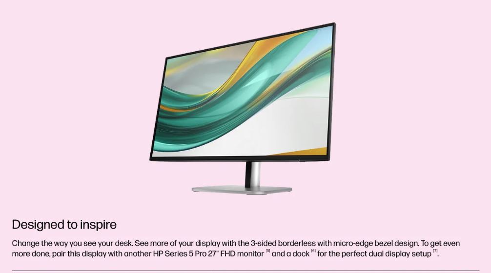 HP Series 5 Pro 527PF 27′ 120Hz FHD IPS Monitor Anti-Glare 1920×1080 16:9 5ms Height Adjustment Tilt Swivel Pivot DP HDMI 4xUSB-A 3yrs