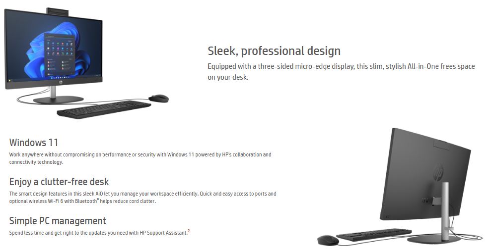 HP ProOne 245 G10 AIO 23.8’/24′ FHD NT AMD Ryzen R5-7520U 16GB DDR5 1TB SSD WIN 11 PRO AMD 610M Graphics WiFi6 Keyboard+Mouse 1Yr OS WTY ~i5 CTO