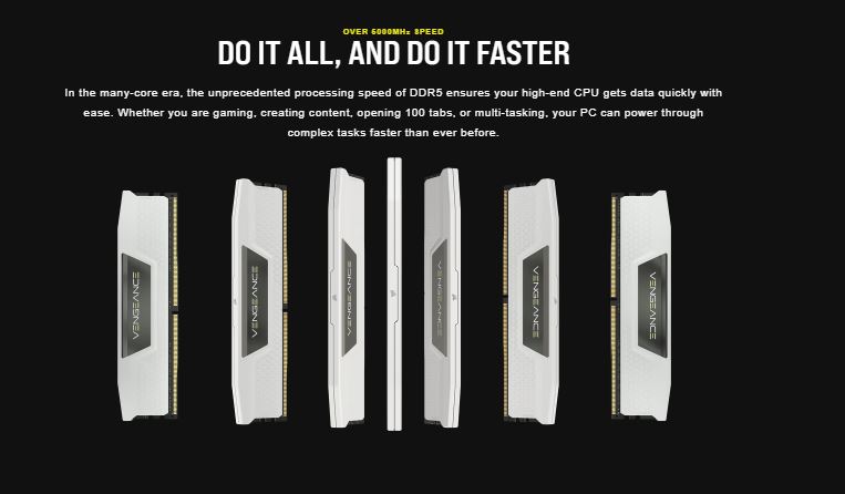Corsair Vengeance 32GB (2x16GB) DDR5 UDIMM 5600Mhz C40 1.25V White Desktop PC Gaming Memory