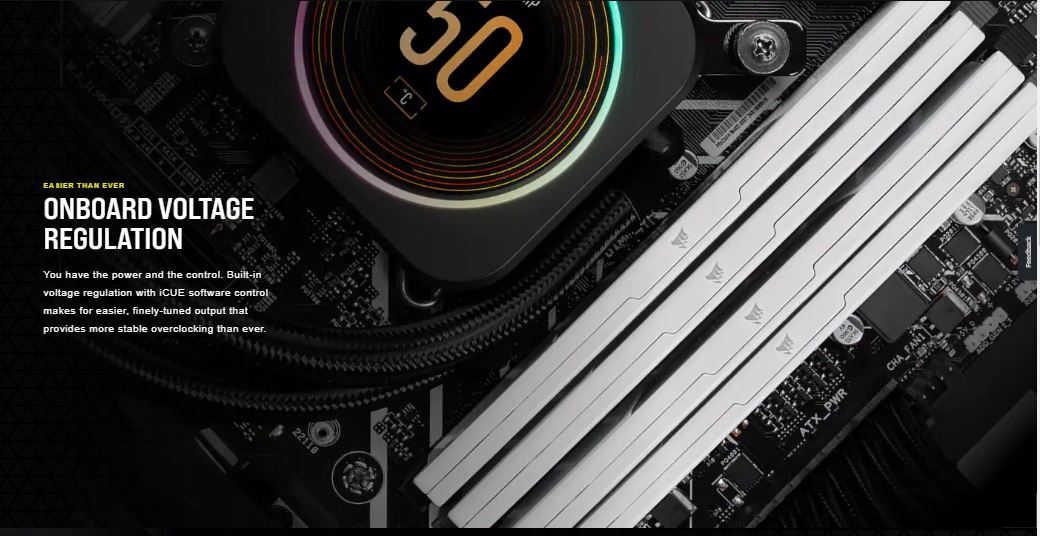 CORSAIR VENGEANCE RGB DDR5 memory delivers DDR5 performance, higher frequencies, and greater capacities optimized for Intel® motherboards while lighting up your PC with dynamic, individually addressable ten-zone RGB lighting. Tightly screened high frequency memory chips enable faster processing, rendering, and buffering than ever, with onboard voltage regulation for easy, finely controlled overclocking. Take control with CORSAIR iCUE software and enable RGB lighting customization, real-time frequency monitoring, onboard voltage regulation, and Intel XMP 3.0 profile customization. A custom PCB provides superb signal quality for high performance and stability on the latest Intel DDR5 motherboards. For cutting-edge DDR5 performance with mesmerizing RGB lighting, VENGEANCE RGB DDR5 lights the way.