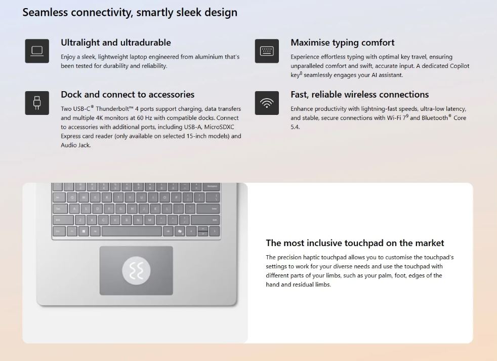 Microsoft Surface Laptop 7 13.8′ Copilot+ Touch Intel Core Ultra 7 16GB 512GB SSD WIN 11 PRO Arc Graphics AI USB-C TB4 WIFI7 BT 18.5hr Black 2yr
