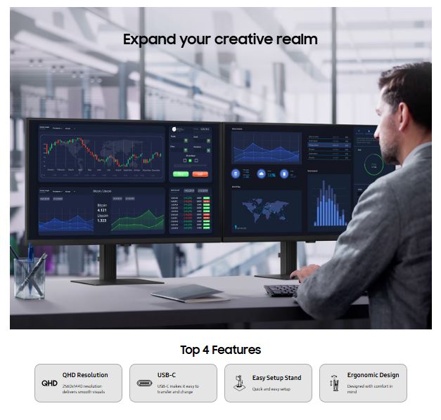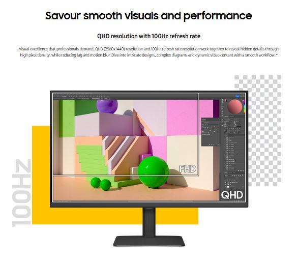 Samsung 23.8’/24′ S6 ViewFinity 100Hz QHD IPS Monitor 2K 2560×1440 16:9 5ms Height Adjust Tilt Swivel Pivot DP1.4 HDMI USB-C HUB LAN HAS HDR10 VESA 3Y WTY
