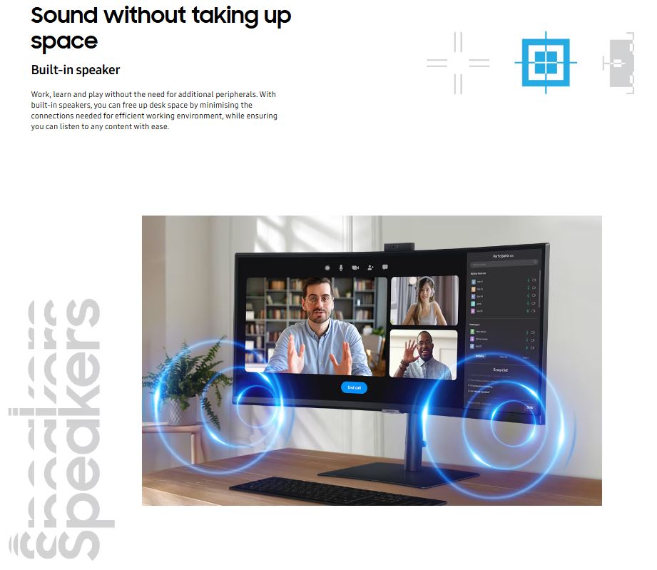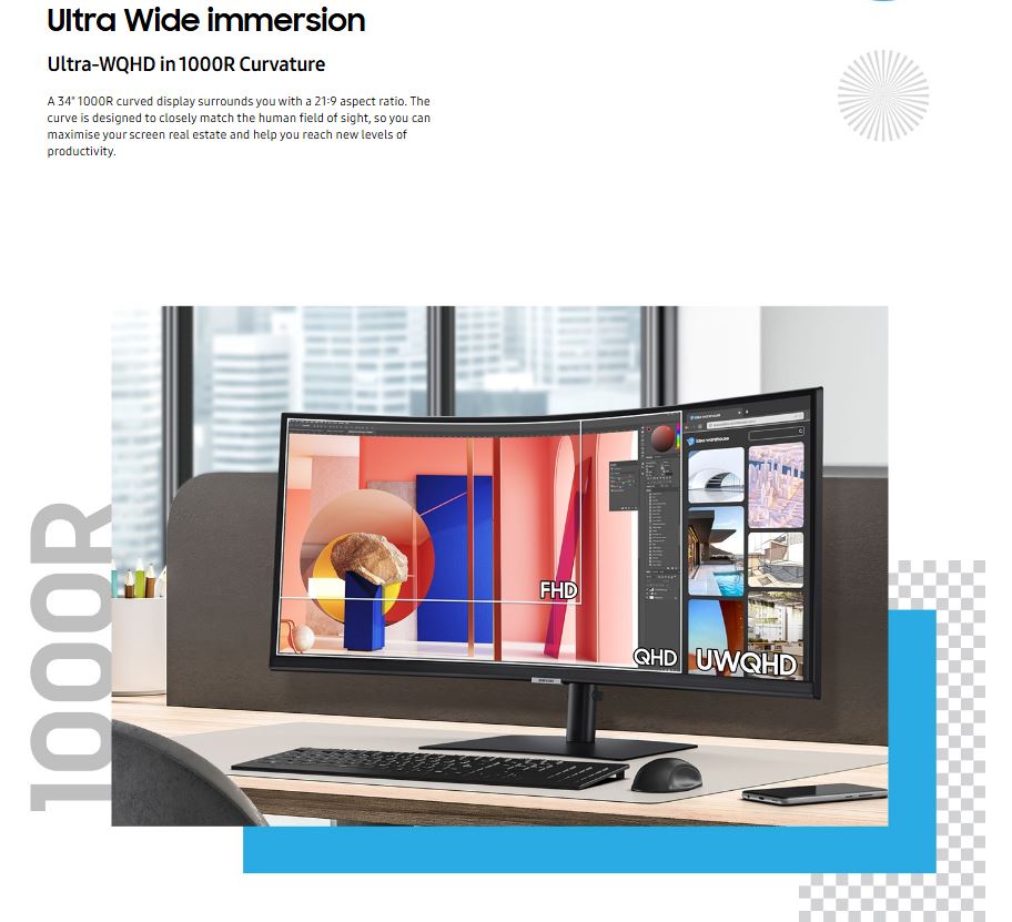 Samsung 34′ ViewFinity S50GC UWQHD Ultra 3000:1 100Hz 3440×1440 21:9 5ms 350 cd/㎡ HDR10 VA DP HDMI USB-C Hub LAN Webcam Tilt HAS Swivel VESA 3YR
