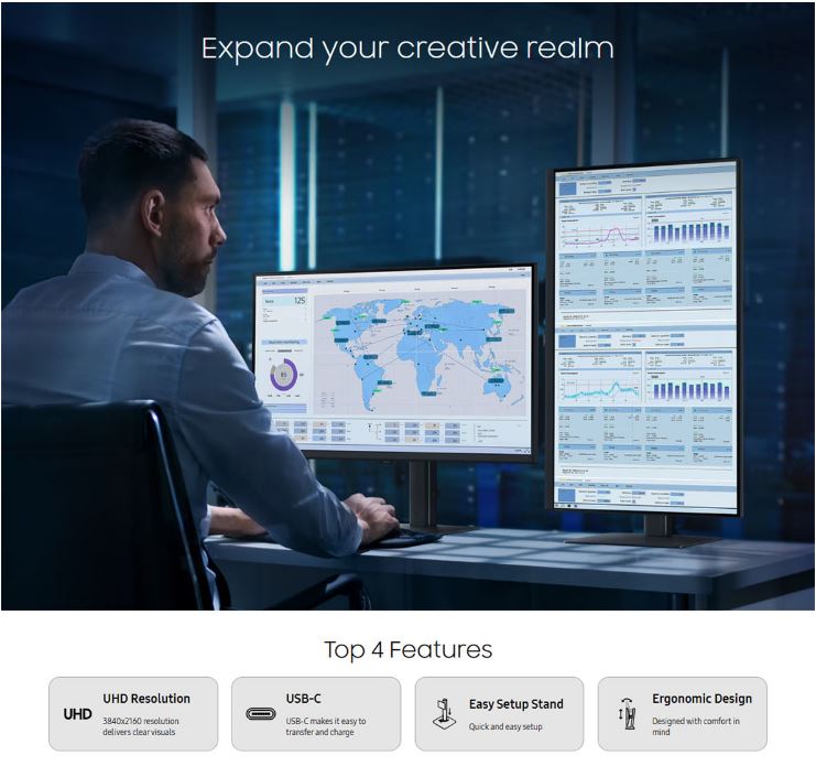 Samsung 37′ ViewFinity S8 UHD 4K 3840×2160 HDR10 16:9 60Hz 5ms 350 cd/㎡ VA DP HDMI USB-C HUB LAN HAS Tilt Swivel VESA Gaming Monitor Black 3YR